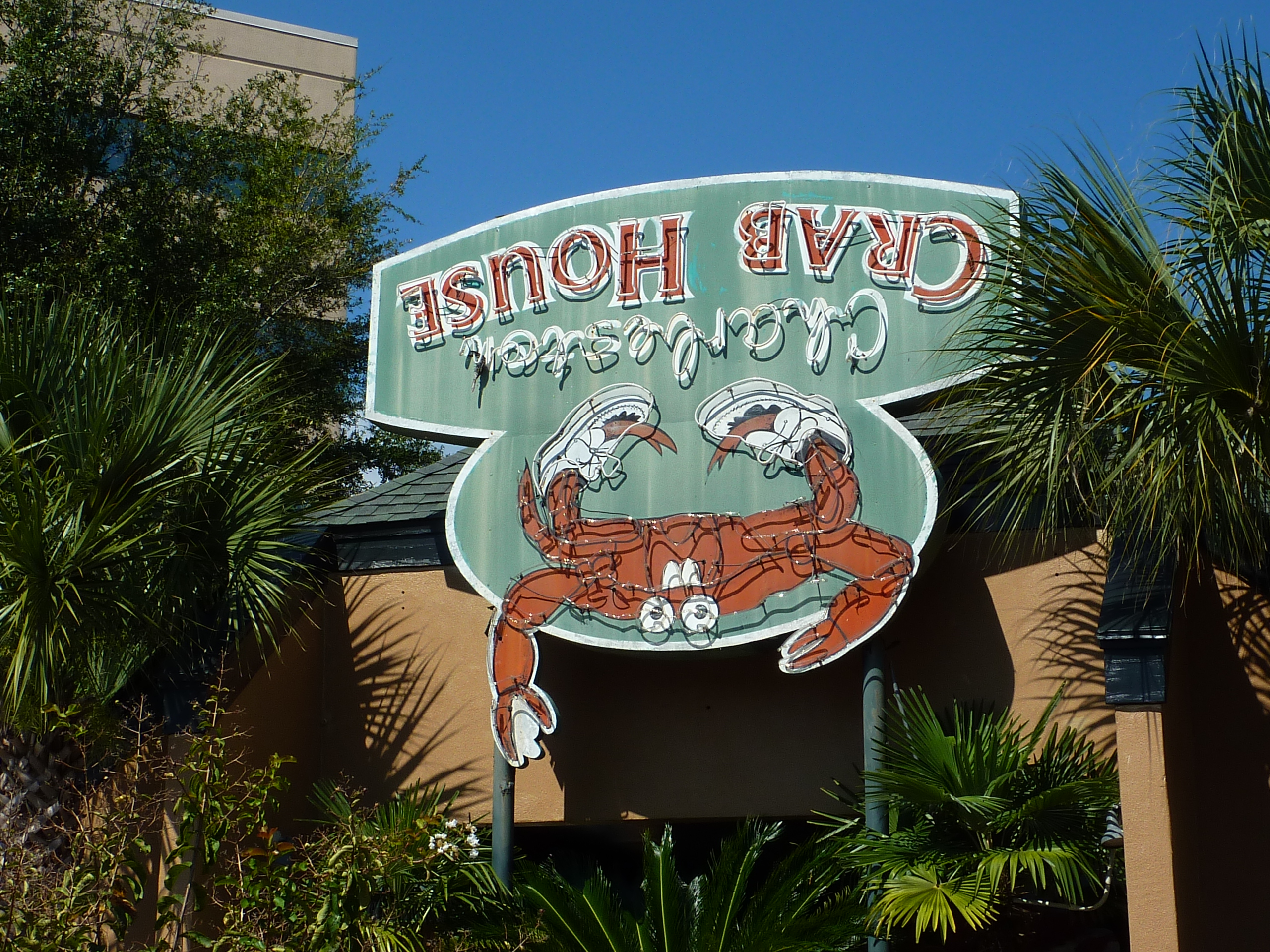 This sign is at the James Island Charleston Crab House. And yes, it’s upside down. According to the restaurant’s website, it’s due to the restaurant’s appearance on a show called “Flip This House” in 2006. The crab theme doesn’t stop here, of course.