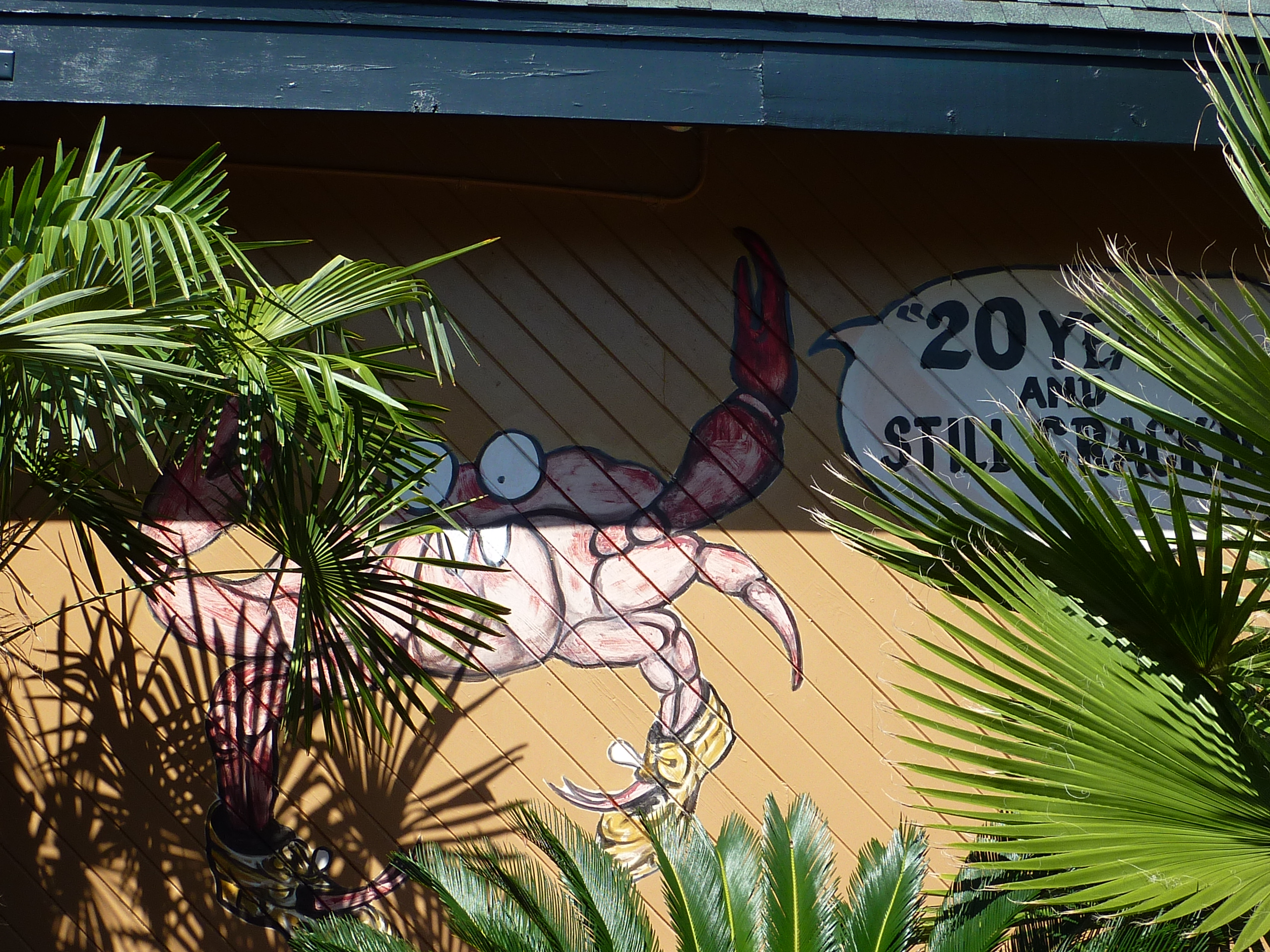 The restaurant’s plants look a bit overgrown, but rest assured that it’s still in business and waiting to reward those who are able to find it–it’s tucked back off two of the main roads, behind some offices and townhomes. Trying to get there may make you a little crabby, but the sight of this toothy crustacean should cheer you up.